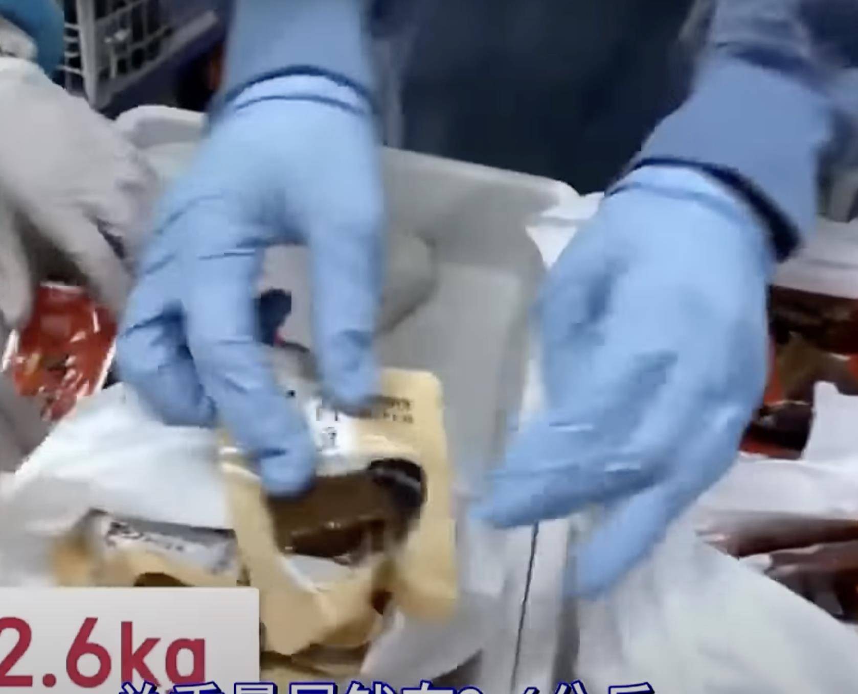经过清点一共带了2.6公斤的肉铺等猪肉制品