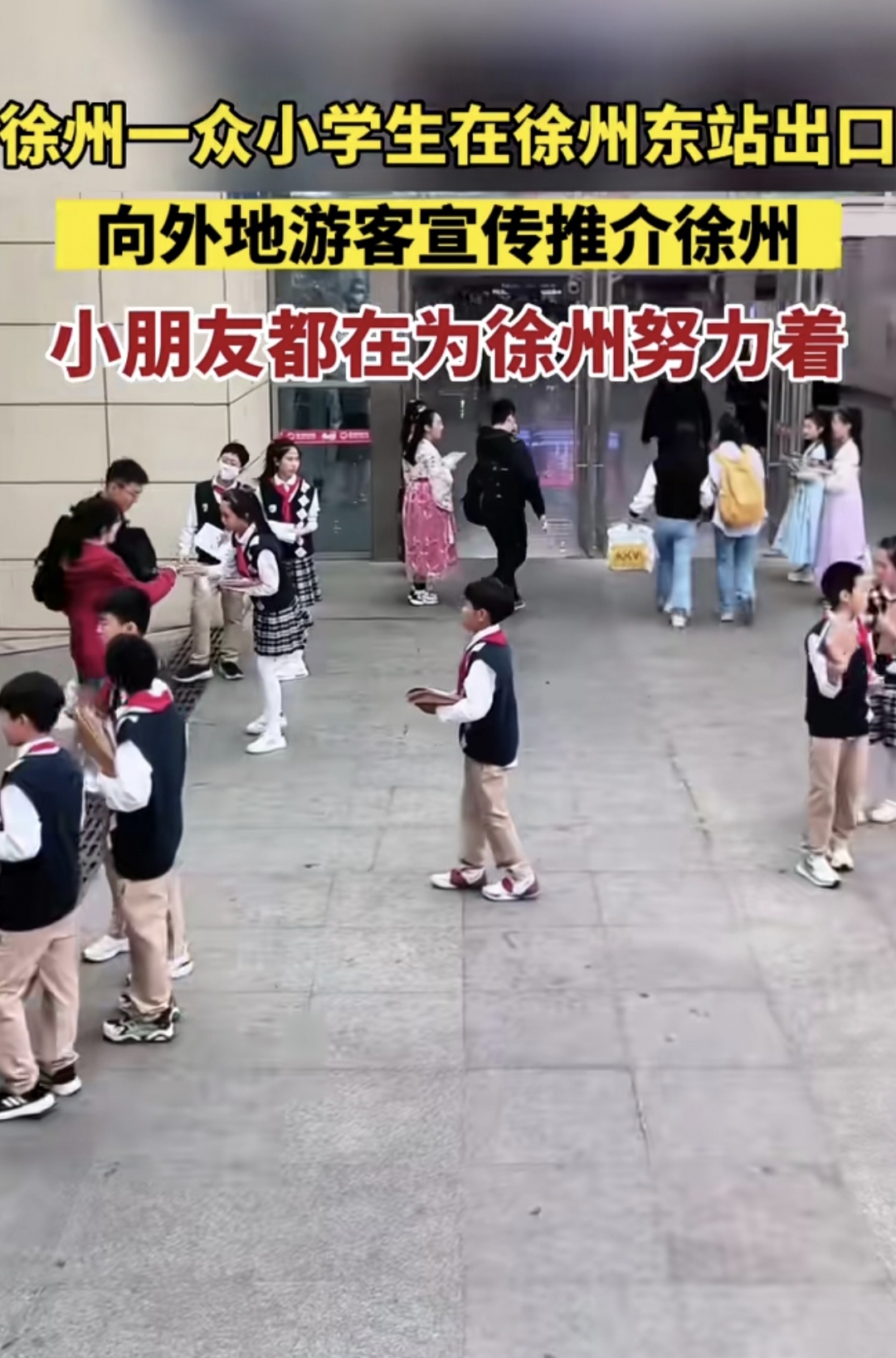再次,就连小朋友,小学生们都在努力积极宣传徐州,他们的手里有徐州当地美食出行相关方面的宣传页。