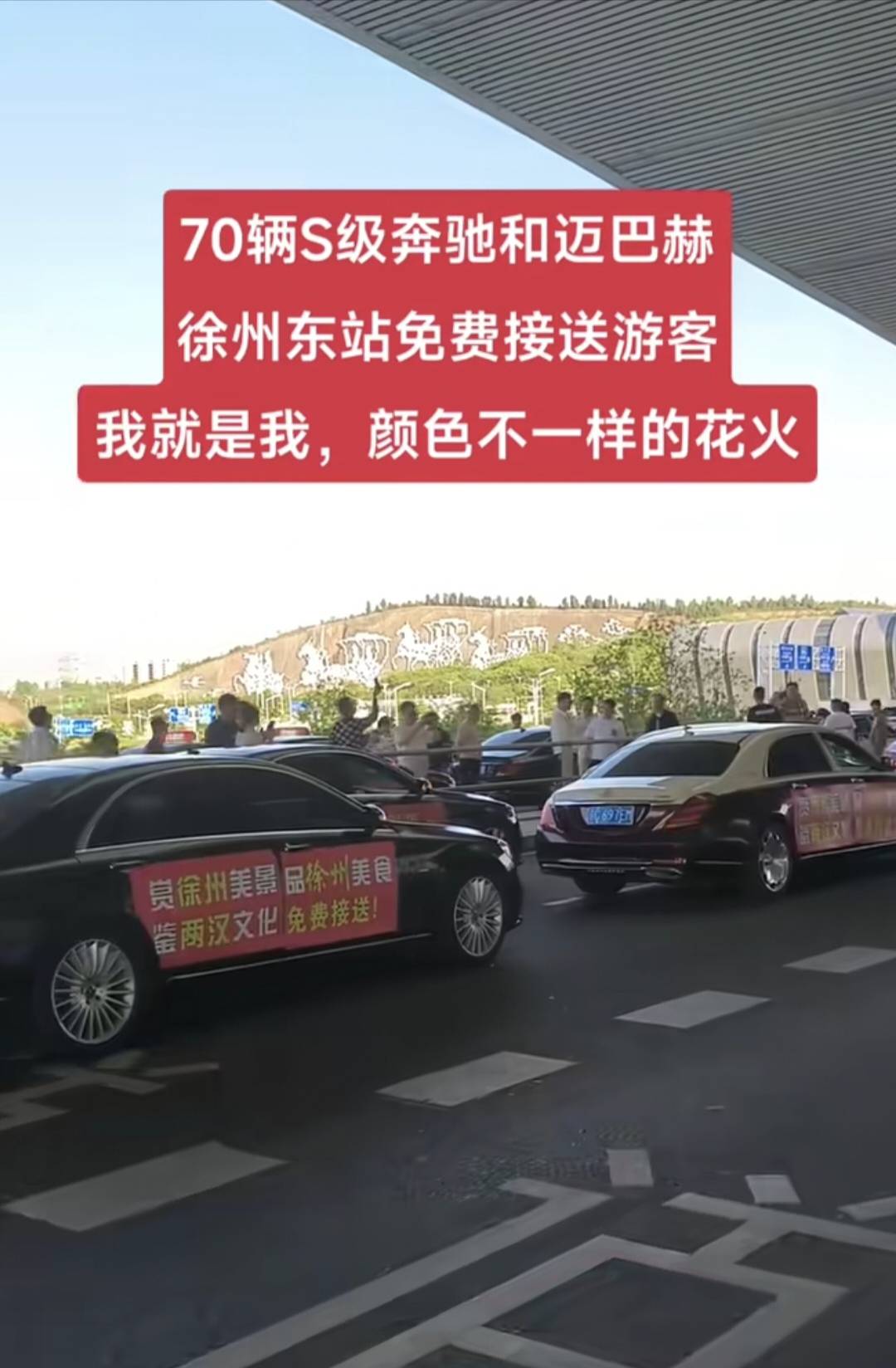 其次,70辆S级奔驰和迈巴赫徐州东站免费接送游客
