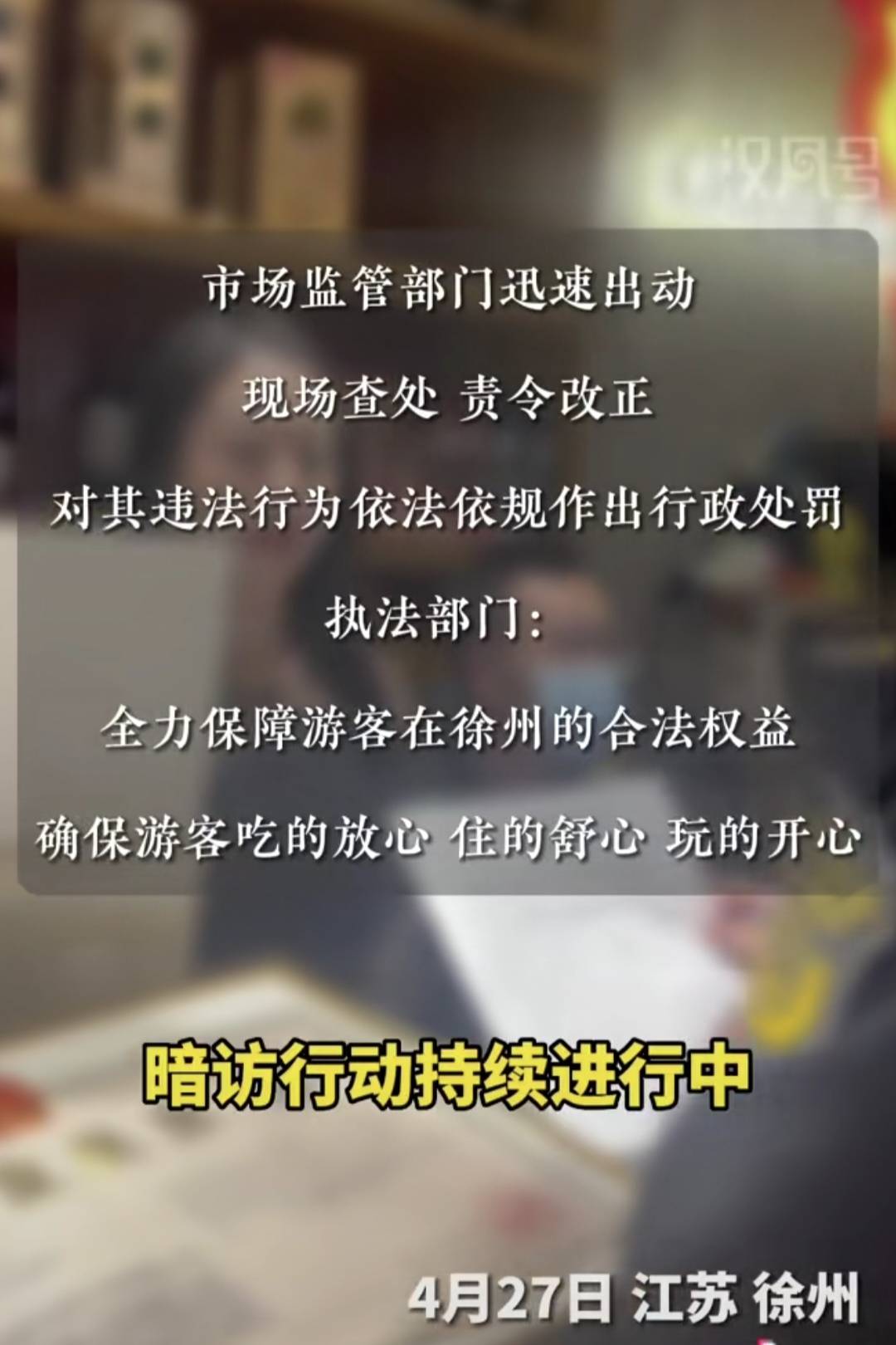 第二,徐州市场监管部门迅速出动,现场查处,责令改正,对其违法行为依法依规作出行政处罚,同时,暗访行动持续进行中!