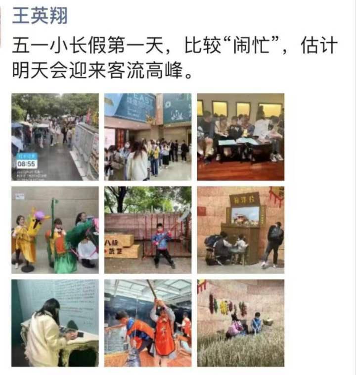 一大早,杭州的几座博物馆门前就排起了长队,这样汹涌的人潮甚至让馆长们都“懵而发圈”。杭州博物馆馆长王英翔在朋友圈中直言,假期首日“比较‘闹忙’”,并预测第二天也就是4月30日会迎来客流的高峰。