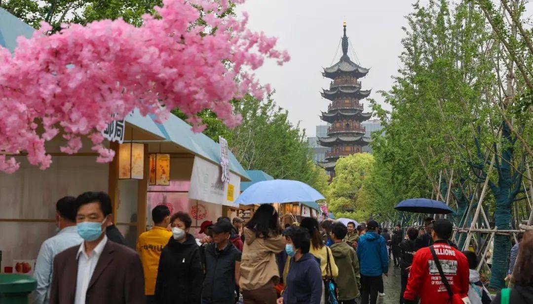 塔影如故,庙会焕新!4月29日上午,绿意环绕的龙华广场迎来热情的市民游客,在江南烟雨中,等待久违的龙华庙会延续记忆中的民俗风情。