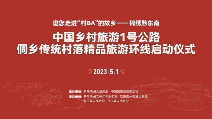 由黔东南州人民政府、中国国家地理杂志社主办,黔东南州文体广电旅游局、黔东南州交通运输局、黎平县人民政府、从江县人民政府承办的中国乡村旅游1号公路——侗乡传统村落精品旅游环线启动仪式将于5月1日在黎平县肇兴千户侗寨举行。
