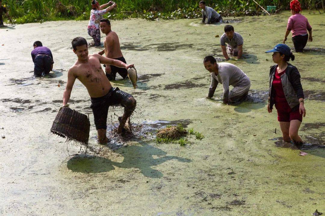 “老庚抓鱼摸虾”民俗活动展现的是当地苗族独具一格农耕文化,抓鱼者需将田里的水搅浑,让鱼缺氧而露出头来呼吸,然后空手抓捕,抓捕过程中,大家相互打泥巴仗嘻戏,祈祷五谷丰登,乐趣无穷。