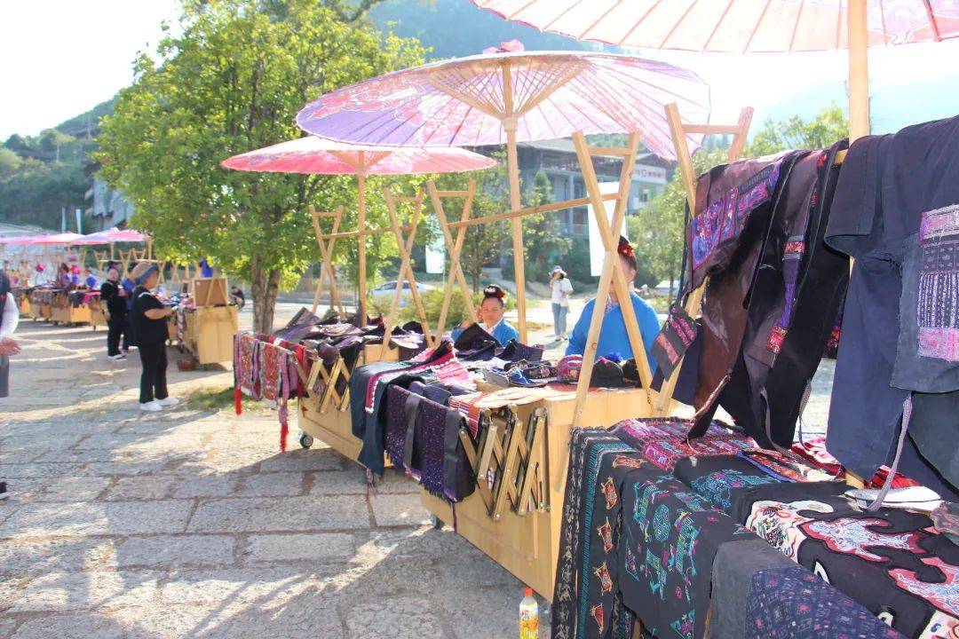 长滩村村民用自己的勤劳与智慧将各类非遗文创产品展示在小推车上,形成长滩“非遗小推车市场”,展示销售刺绣、剪纸、蜡染等文创产品。