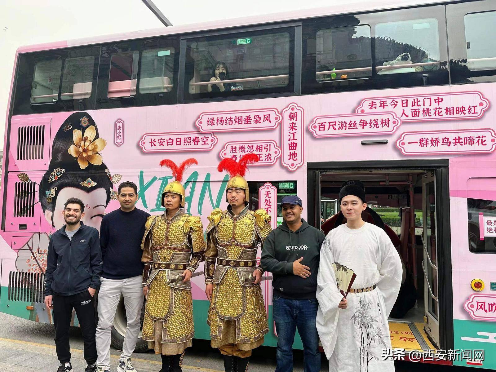 “五一”假期到来,西安成为游客热门打卡地。节前,首辆唐诗主题观光巴士在西安大雁塔北广场正式发车,首批游客们在乘坐“古城漫游”观光线饱览城市美景、邂逅春意的同时,享受了一场“穿越”千年的唐文化盛宴。
