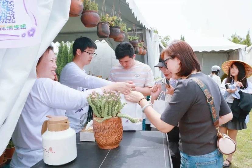 本届购物节主会场设立在花谷大草坪,现场设有花谷花艺、花谷集市、咖啡小站等三大展区,市民可以在此品尝醇香拿铁、体验手网烘焙、品鉴精致茶歇、选购精品花卉,沉浸式体验“品、游、购、娱、行”一站式嘉年华。大草坪上,十几个展位前人头攒动、热闹非凡,展示了各种精品花卉和绿植,有蝴蝶兰、景观盆景、鲜花、多肉等多达几十种新奇品种。