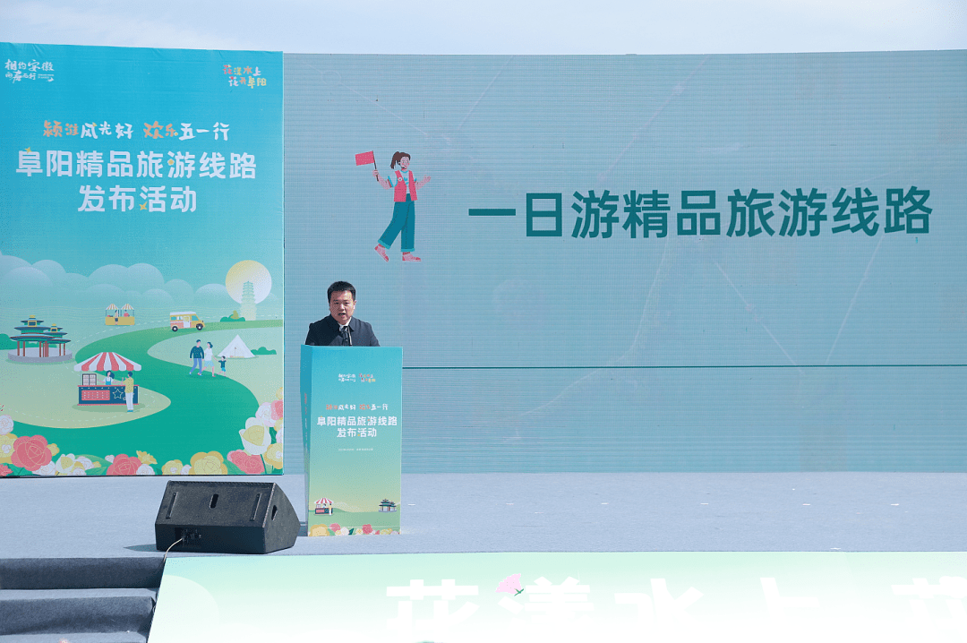 4月29日,“颍淮风光好 欢乐五一行”阜阳精品旅游线路发布活动在阜阳市双清湾公园成功举办。阜阳市人民政府副市长郑久坤出席活动,阜阳市文化旅游体育局、市农业农村局、市乡村振兴局及阜阳市文明旅游工作联席会议成员单位负责同志,来自各县市区文化旅游体育局主要负责同志、分管负责同志以及非遗传承人代表、景区代表、旅游商品企业代表共200余人参加活动。