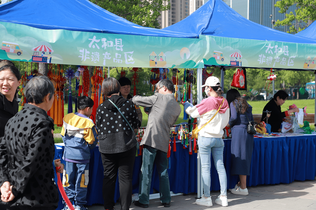 活动现场将市集与展销进行融合,开启沉浸式体验,精心设置了文旅资源展示区、美食展销区、非遗产品区、花漾打卡区,品类繁多的地域美食,韵味悠长的民俗及非遗文化展示品,潮趣时尚的市集打卡,讲述了博大精深的阜城故事,将颍淮风情的独特魅力展现得淋漓尽致。
