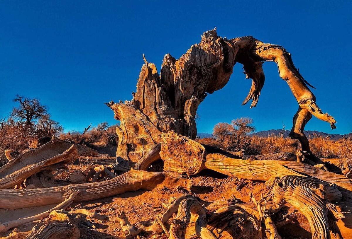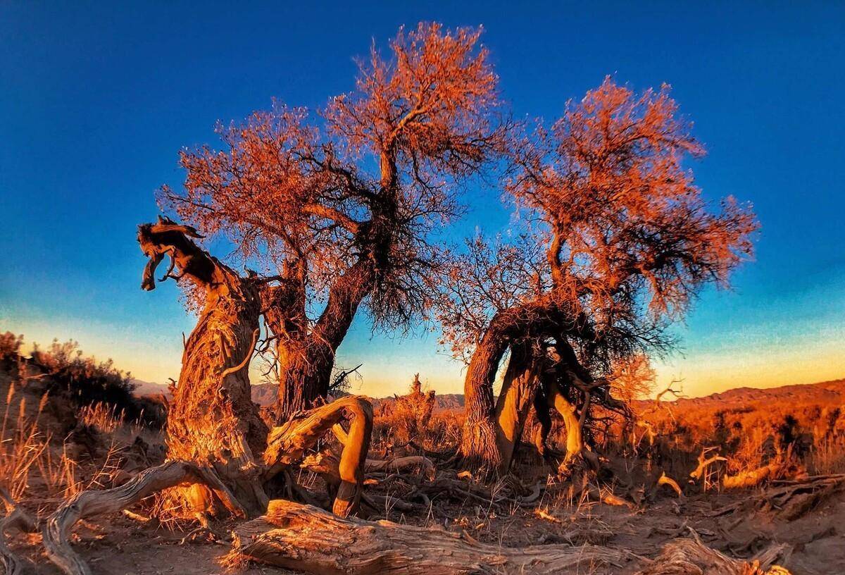 这里的石头会开花。我发现一道高大的石壁横在我面前。其实是石壁的另一面,是一道土坡,土坡缓缓上升,升到最高处又突然断崖式下落。从下往上看,才发现是一道约4层楼高的石壁。这面高大的黑色石壁上,竟然开满了橘黄色小花,花朵密密麻麻地连成一片。当我我踩着松散碎石,手脚并用往上爬上去看个具体。到了跟前,才发现橘黄色的东西并不是花朵,是石壁上附着的一层米粒大小的变质岩石,颗粒全都呈现着橘黄色,密密麻麻地连在一起,再与黑色的石壁交相辉映,远远望去,就像许多“花朵”绽放。这里的许多山体的石壁上都开放着橘黄色的小“花”,神奇而美丽。