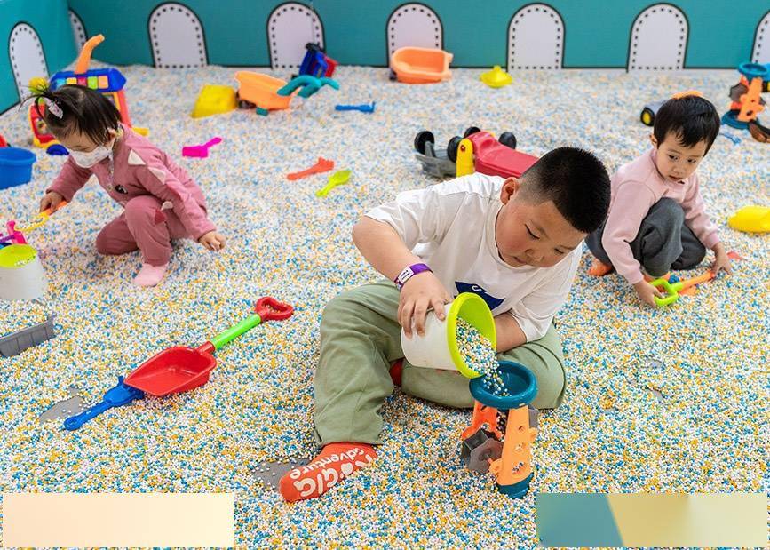 4月29日,小朋友在呼和浩特市玉泉区的七彩城购物中心游乐区内玩彩砂。丁根厚摄