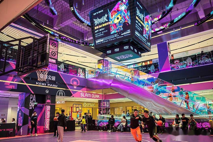4月29日,人们在呼和浩特市玉泉区的凯德茂购物中心“篮球公园”内玩耍。丁根厚摄