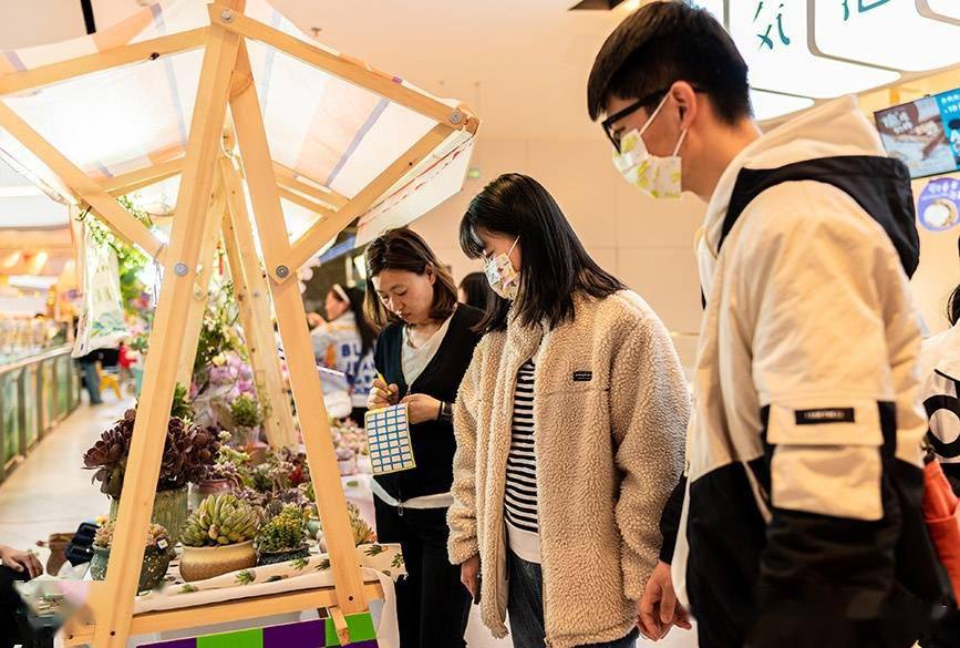 4月29日,人们在呼和浩特市玉泉区的凯德茂购物中心市集区选购多肉植物。丁根厚摄