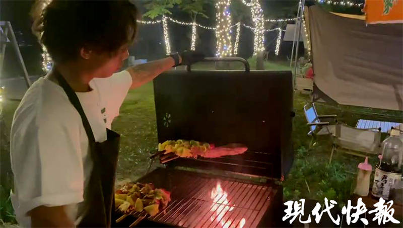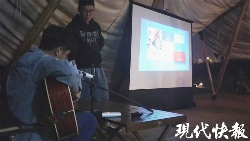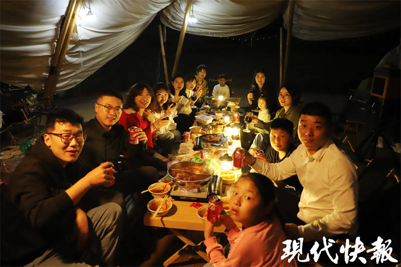 “曾梦想仗剑走天涯,看一看世界的繁华……”4月29日是“五一”假期的第一天。当天晚上,高先生所在的公司在位于扬州邗江的“外号camping城市营地”包下一处帐篷,为大家组织了一场团建式的露营。让他感到惊喜的是,同事还专门请了一名乐手,给大家弹琴伴奏。动听的音乐声中,大家围坐在桌前高声合唱,过了一把“露天KTV”的瘾。夕阳西下,营地里星星点点的灯光逐渐亮起,配上远处的高楼大厦,别有一番风味。
