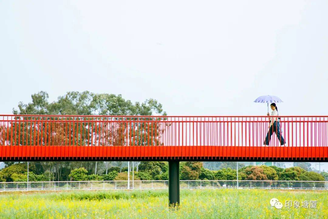 凤凰花海由亮丽舒适的沿河两岸的车行碧道、人行道路、登山道、悬空栈道、廊架、驿站、观景台、山水乐活区、田园观赏区、人文共享区、农业观光风景带等组成,“生态田园的凤凰花海,健康快乐的活力水岸”为美丽塘厦增添色彩。