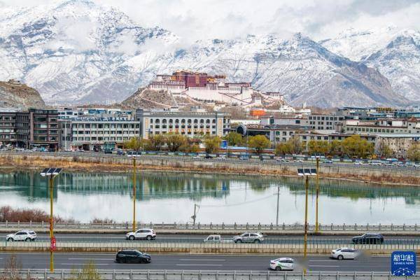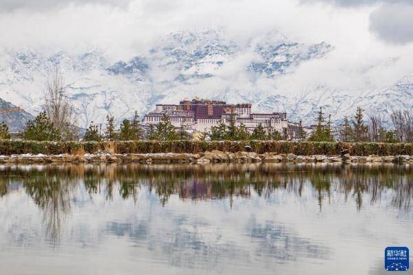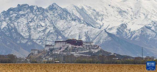 从拉鲁湿地拍摄的雪后布达拉宫(3月30日摄)。