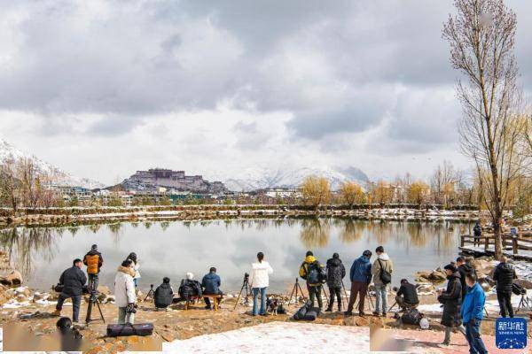 摄影爱好者在拉萨南山公园拍摄雪景(3月30日摄)。