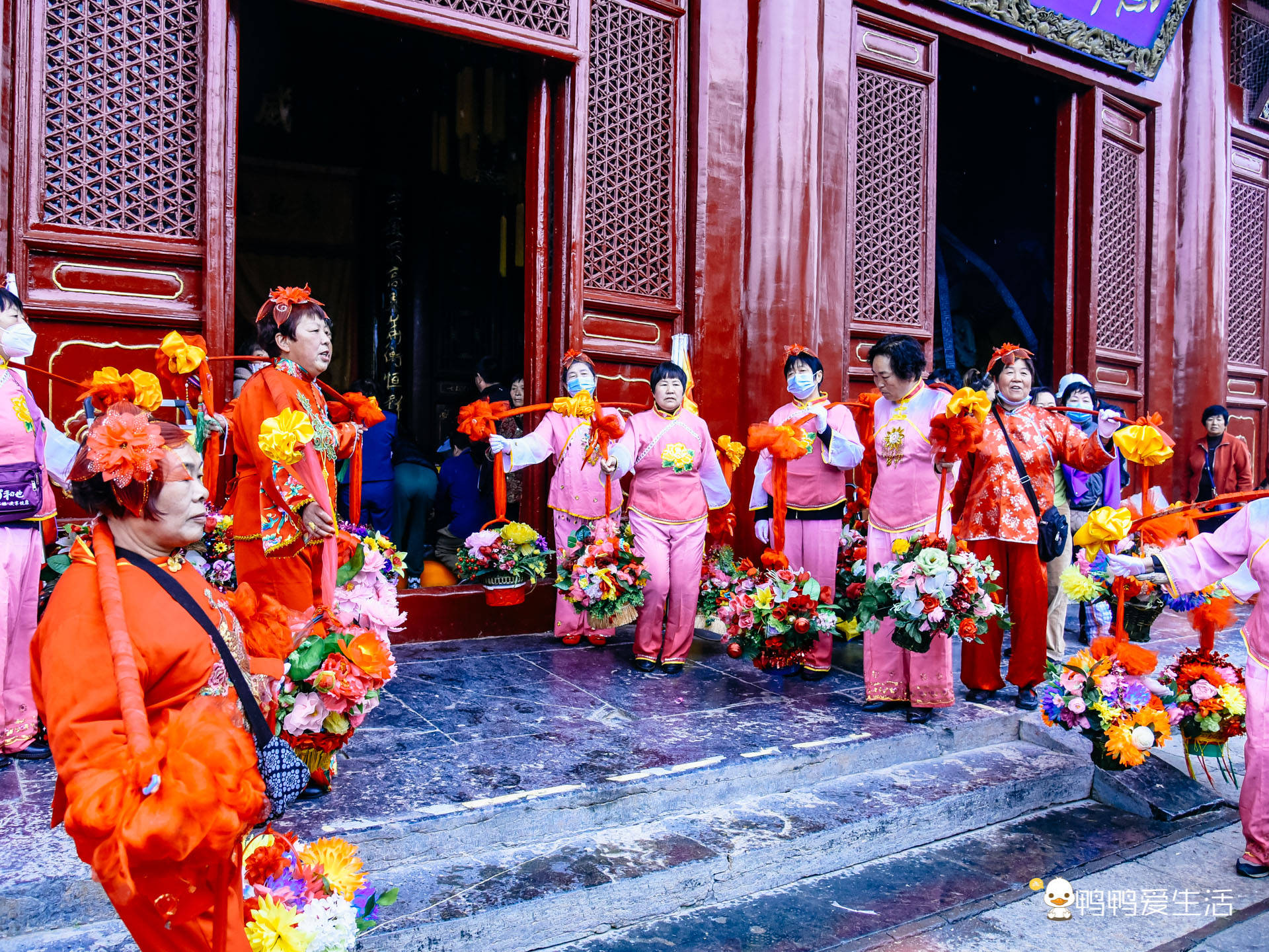 当地百姓自发前往,挑着花担、拉着长长的布帘行进,整个中岳庙里人头攒动、锣鼓喧天,热闹非凡!