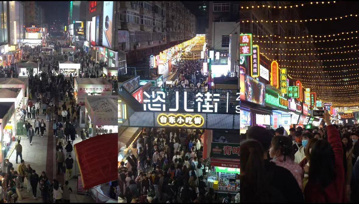 在直播活动现场,来自五湖四海的游客们纷纷热情参与,小编还与大家进行互动,并送出好客山东精美文创纪念品。来自辽宁的大学生们说:“来到青岛台东步行街,首先给我的感觉是这里的管理比较规范,整体来说秩序非常好,并且人流量也大,非常繁荣!我现在排队要购买小海鲜,感觉这里的食物品种非常丰富,适应不同人群的口味。从这个夜市可以看出,山东的夜经济是比较发达的。”