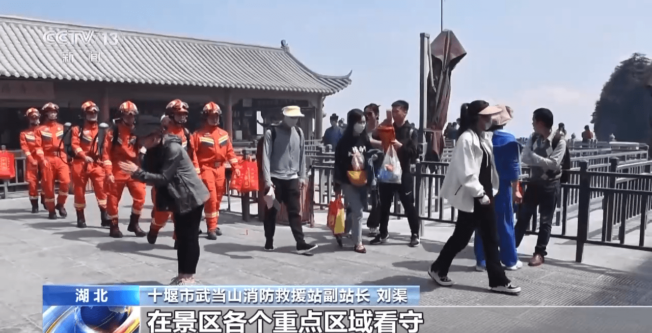 湖北十堰市武当山消防救援站副站长 刘渠:我们派出消防员在景区的各个重点区域看守,严禁游客携带火源进山,同时派出各路巡逻小组进山巡逻,确保游客人身安全。