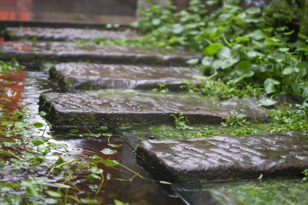 雨后的古村,有别致的韵味。沿着古村道,踩着被雨水洗的发亮的石板,嫩绿顽强地从缝隙里钻出来,欣欣向荣的花朵也在春雨中探出头来,惹人怜爱。