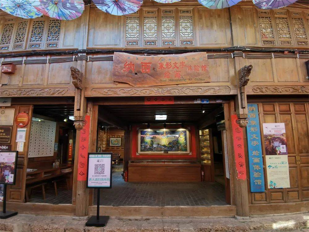 纳西象形文字绘画体验馆位于光义街现文巷,是集展览、销售、体验和学习为一体的民间综合性艺术馆。