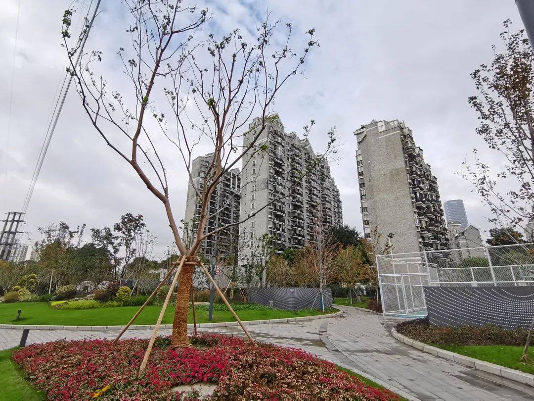 “第三乐章”随即来到口袋公园腹地所包含的地铁出入口站前广场,红花槭在开阔的“五线谱”上吟唱着诗句。