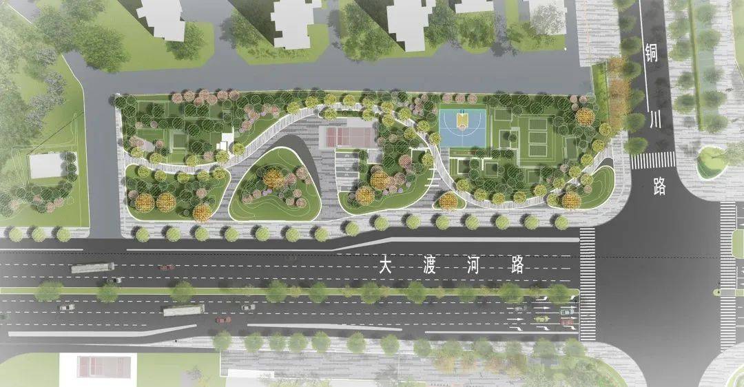 随着大渡河路景观道路整体改建的步伐,大渡河路铜川路东北角绿地在原址上焕发出新的活力。作为大渡河路沿线北起首座开放式公共绿地,此次改建面积达6500㎡,南起铜川路,北临真如公园围墙,命名为“大渡河路口袋公园”。