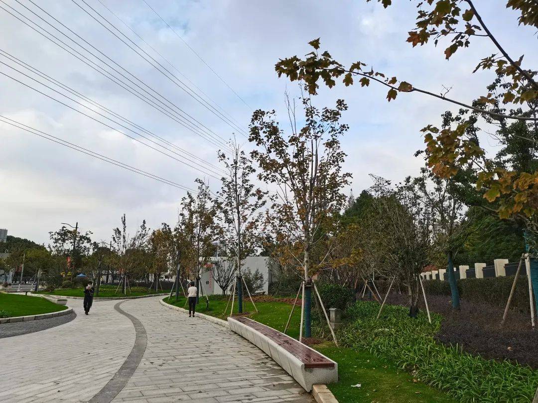 超高压架空线着实给口袋公园的植物配置带来了限制,但换个角度看,仿佛空中的五线谱,增加了整座园子的律动感。