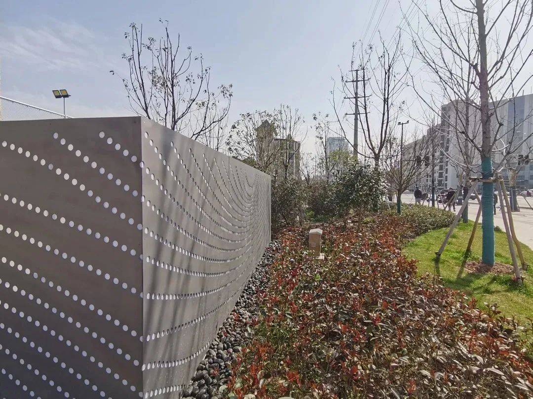 “水波纹”穿孔景墙用于遮挡地铁通风井