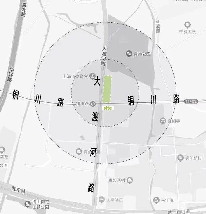 轨交14号线的铜川路站1号出入口设在该座口袋公园内,绿化空间不仅要吸纳来往进出的人流,还需承担10余处大大小小的通风井、冷却井等配套构筑物。既要从功能上留出人流集散的广场空间和非机动车停放区域,还要在景观上遮挡各类通风井等地铁附属设施。为此,沿着场地南北向理出一条曲线型主园路,在避开各类构筑物单体的同时,牵出3条支路,并与地铁站前广场有机融合,从而构成了整座园子的园路脉络。