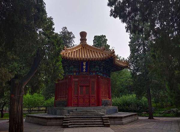 位于北坛门外,全亭为白石筑成,直径6.6米,高约8米,亭外四周有栏杆围绕。栏杆是以12个球型石墩分4组,每组3个,中间用铁管相连,四周有出口。