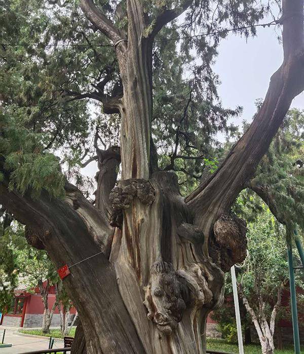 南坛门外的粗壮古柏为辽代兴国寺的遗物,历经千年,故称“辽柏”。中山辽柏是北京有记载的最古老的柏树,距今已有1500多年的树龄,最大的古柏四五个人才能环抱起来。