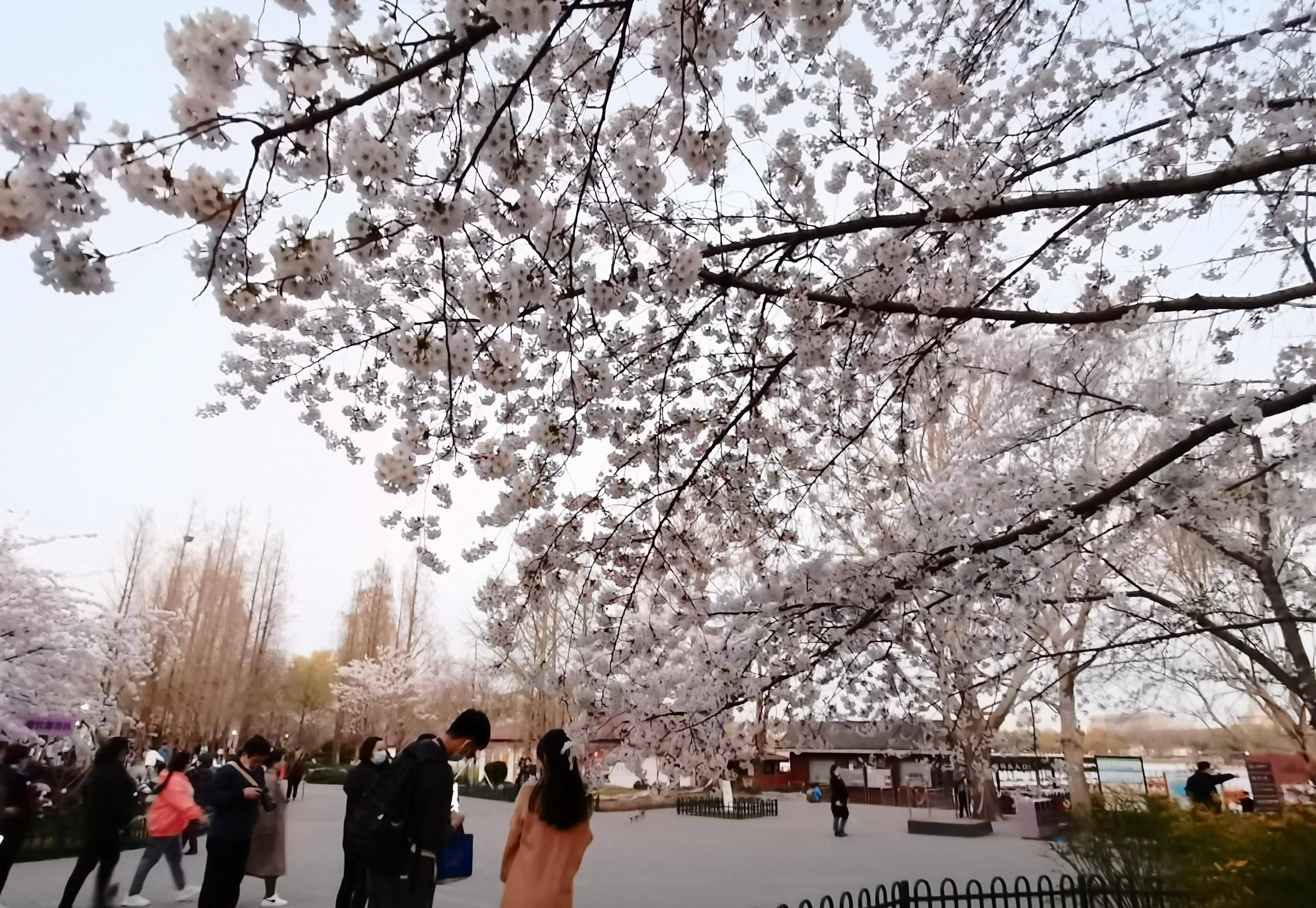 2023年3月27日,游客在北京玉渊潭公园观赏樱花。