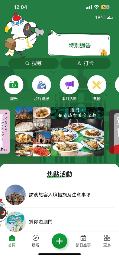 此外,澳门特区政府旅游局也有相关App提供当地旅游资讯,方便旅客制定旅游规划,我们每月也有多个活动宣传。想要深度游的旅客,可以多留意澳门特区政府旅游局的信息平台,这样大家来澳门时便能把握最新旅游资讯,体验更广阔的深度游。
