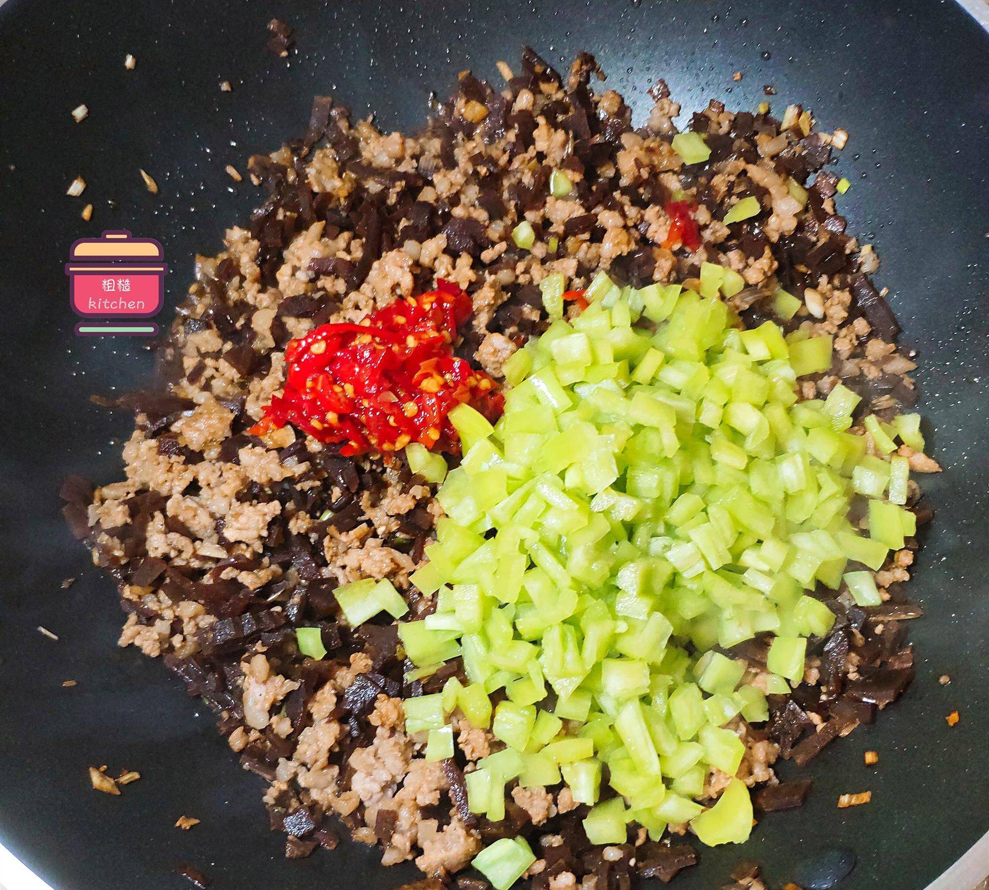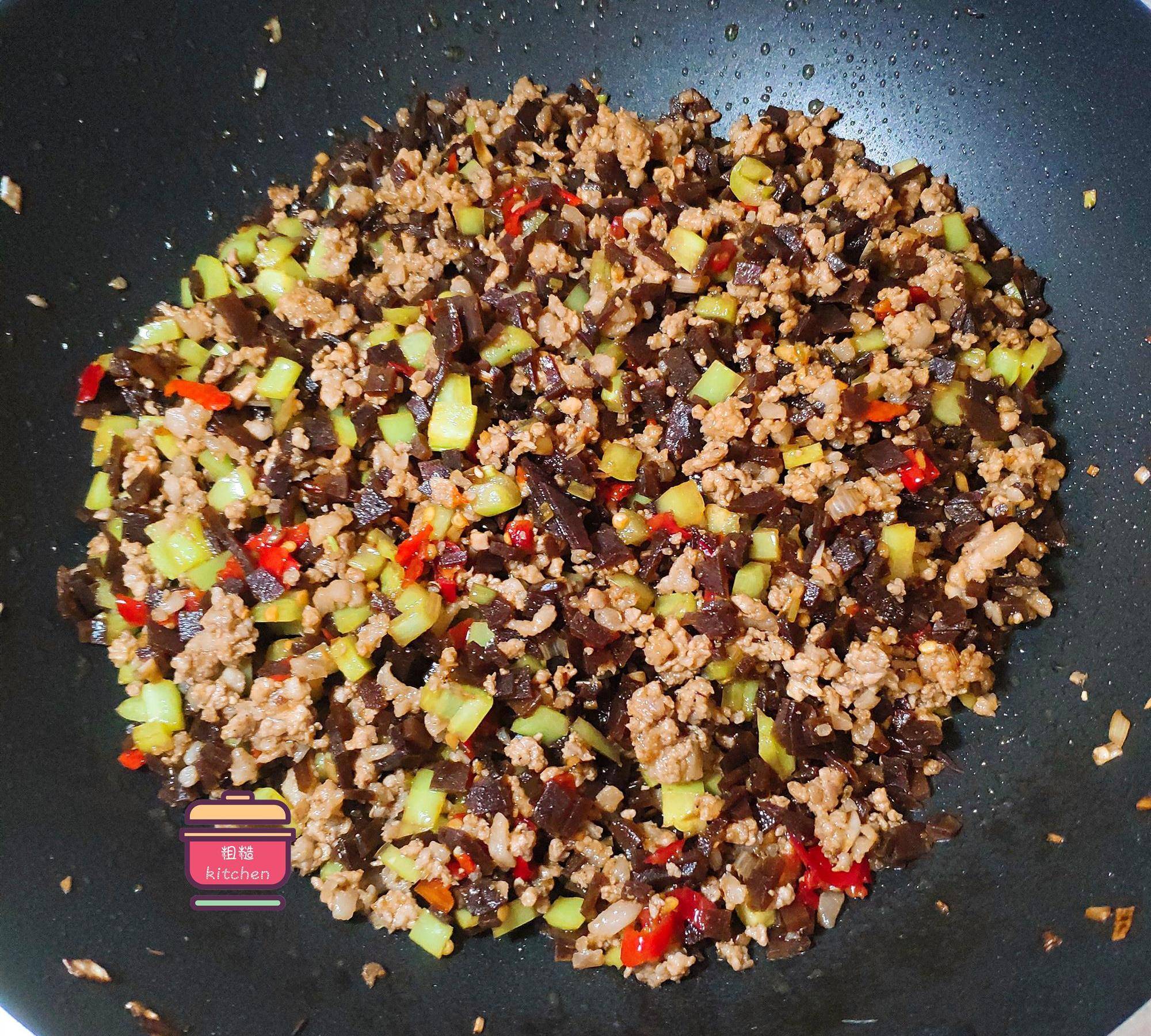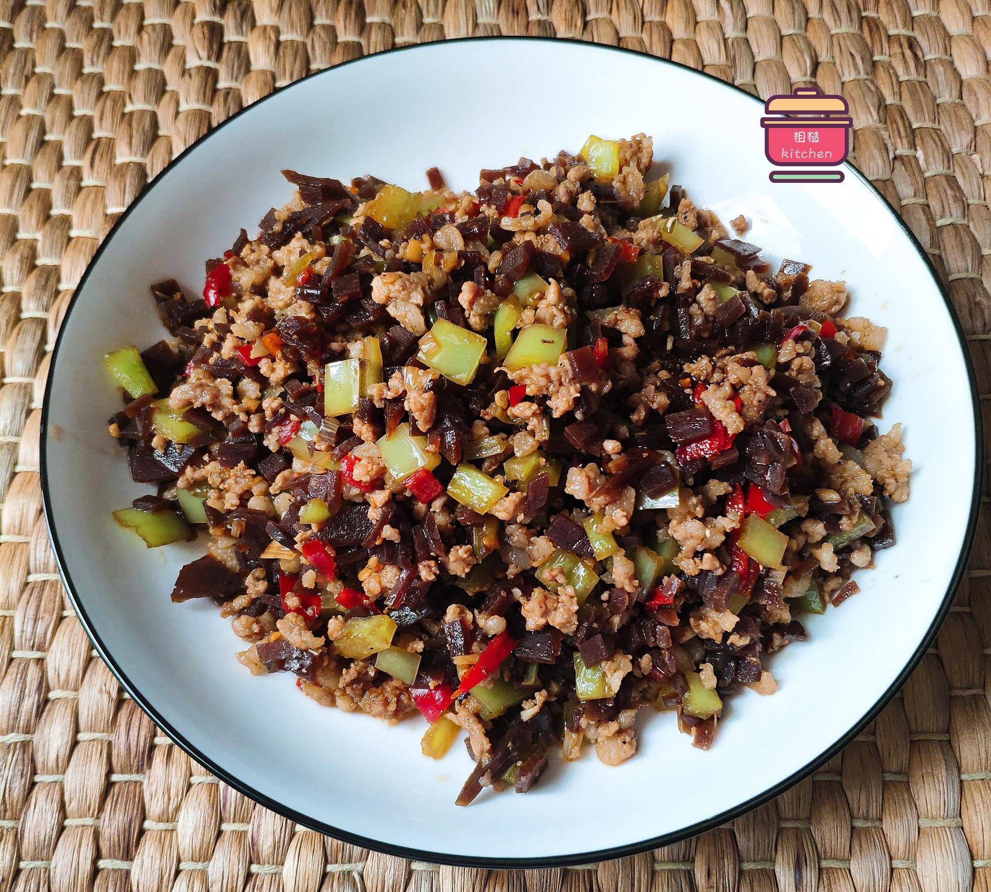 7、食材完全成熟就可以关火了,出锅前加一勺甜酱油提鲜,这样炒出来的黑三剁就很具有地方风味了。