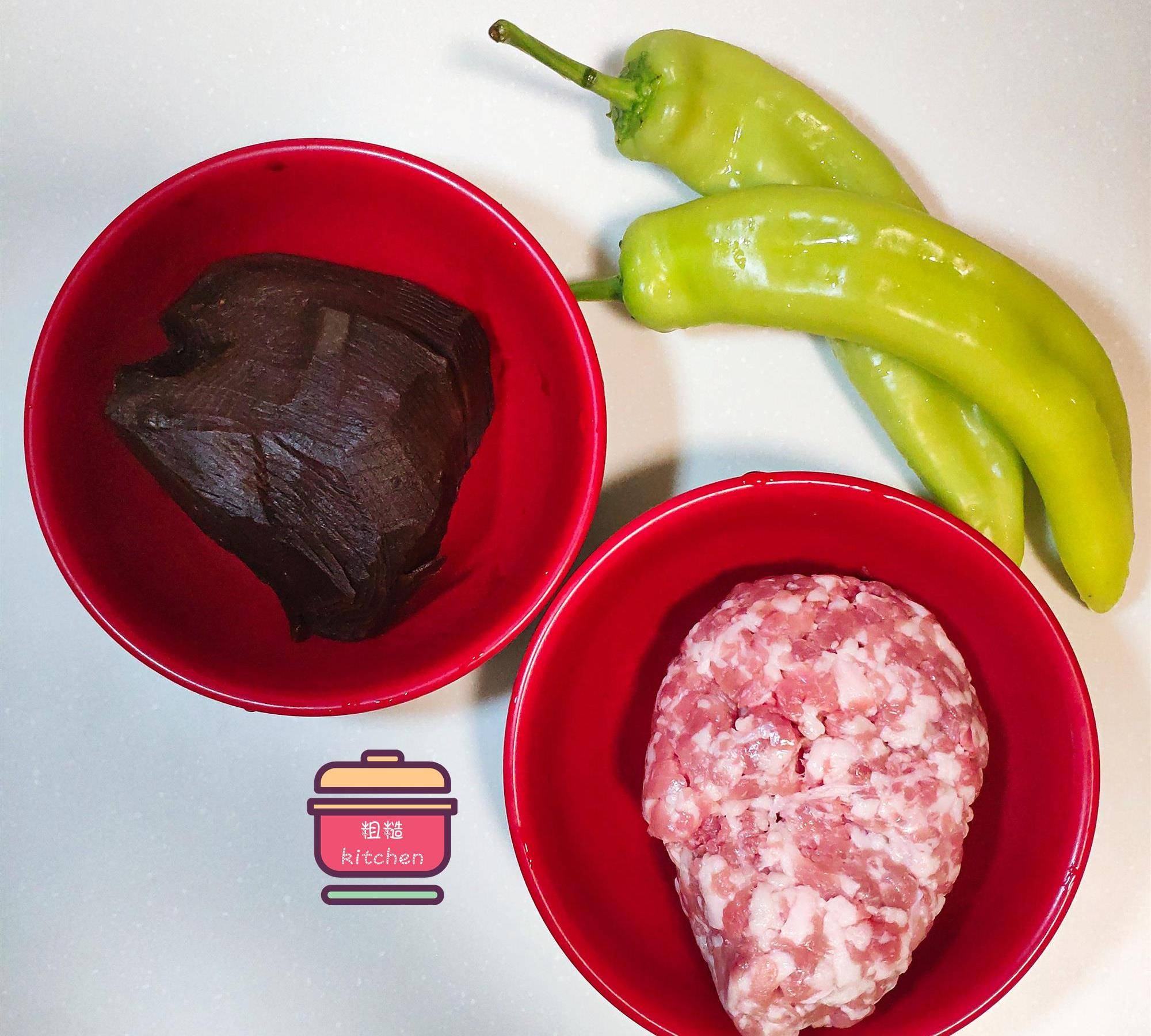 玫瑰大头菜50克、猪肉末100克、青椒2根、红线椒2根、葱1/2根、大蒜2瓣、生姜1块、料酒1勺、甜酱油1勺