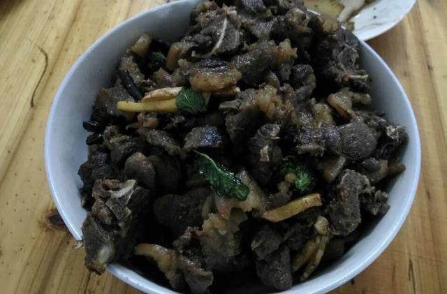 你们谁能看出来这是什么肉?反正媳妇拿出来切的时候,我第一眼就瞧出来这不是猪肉!这是狗肉,山里人不养狗,但是吃狗肉,而且属于高档肉,平时吃不着。关于狗肉的营养我就不细说了,但是我不吃,不能说我是爱狗人士吧,但是我心里过不去这个坎,我也不阻止别人吃。