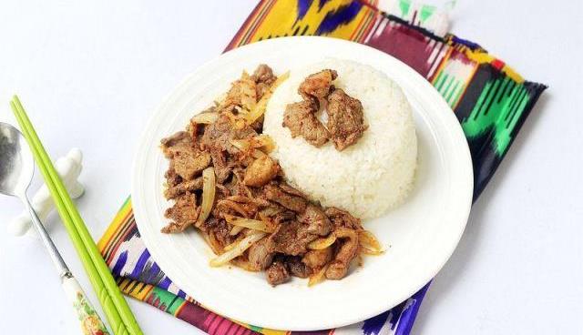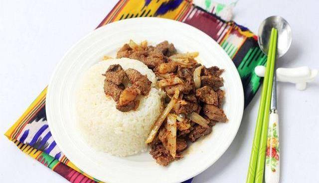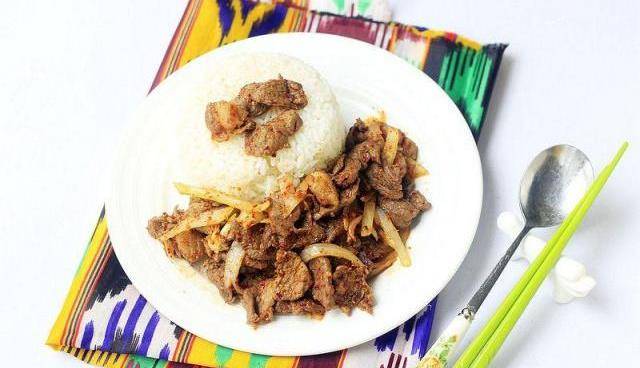 盖浇饭属于饭菜合一的主食,这样说不为过。这种叫法属于西北地区叫法,东北叫烩饭,广东叫碟头饭,还有的地方只是咖喱鸡饭,麻婆豆腐饭,其实都是菜和饭放在一个盘子里吃,菜浇在饭上,由此称作盖浇饭。我们新疆爱吃羊肉,也爱吃烤肉,要知道新疆也种植稻谷的,自然也吃大米,新疆真的有大米,不纯纯的就是面食。所以,我今天就把炒烤肉和盖浇饭结合在一起了,做了《炒烤肉盖浇饭》,真是地地道道的饭菜结合味道,小伙伴们爱吃羊肉的一定要试试哟!自己在家做就是特划算啊,羊肉实在是太贵了,一公斤70多元,一盘烤肉盖浇饭好几十元啊,还没有这实惠,所以有的小伙伴们给我留言,吃不起羊肉啊,也没吃过这样的炒烤肉盖浇饭!