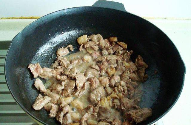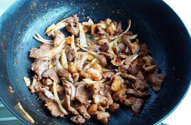 3、可以不加油,要用特别厚的锅炒,主要是用锅的热量反复翻炒,要速度快在,这样炒烤肉好吃鲜美鲜嫩