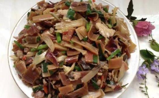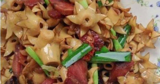 第二种就是树花炒鸡蛋,在云南人们好像炒鲜花的时候,都是离不开炒鸡蛋的。这种树花看上去和普通的鲜花不太一样,就是干枯的苔藓一样,没有好看的外观,但是云南人用它炒鸡蛋很常见,在菜市场也随处能买到这种树花。