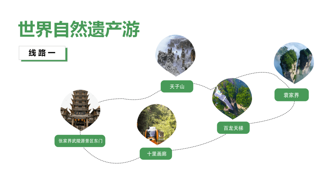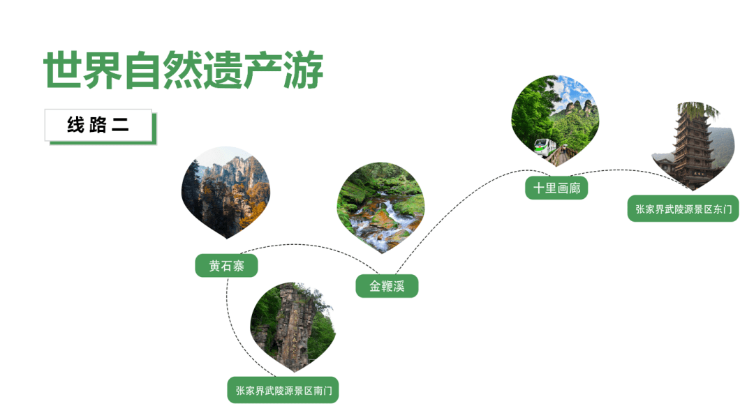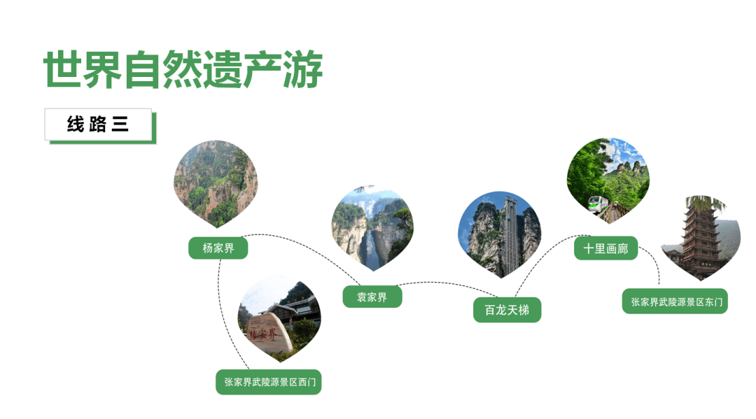 武陵源景区西门——杨家界——袁家界——百龙天梯——十里画廊——武陵源景区东门