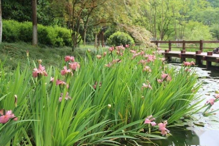 为做好长桥溪的整体环境品质提升,丰富长桥溪的水湿生植物种类,尤其是常绿水湿生植物的应用,凤凰山管理处与杭州植物园合作研究《湿生鸢尾在杭州西湖景区的示范推广应用》,这些“新优特”鸢尾于去年冬天“安家”长桥溪。今年,是他们的第一次“集体亮相”。