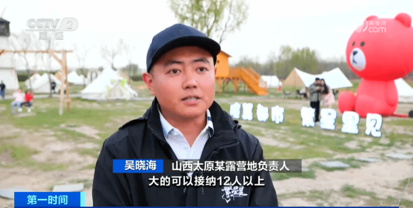 山西太原某露营地负责人 吴晓海:营地里一共38顶帐篷,大的可接纳12人以上,小的可以接纳6到8人,最大接待量在500人左右。目前预订已经排到了5天以后。