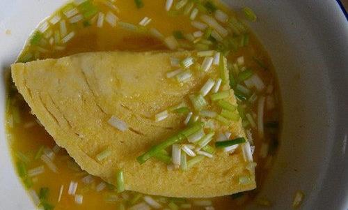 第二步要准备一个碗,打两个鸡蛋,然后加入切好的葱花,加入盐和调味料。搅拌均匀后,就可以把馍片浸入蛋液里,两边都要沾上。而且要使蛋液均匀的沾上。