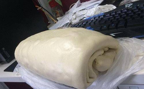 这个馍馍放在电脑桌上,看起来蓬蓬松松的,而且还很柔软的样子,确实很想趴上去。真的不愧叫做枕头馍。第一天的时候,我把枕头馍拿出来做早餐,沾上各种酱料,也才吃了一点点。