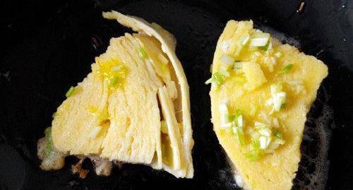 下一步就是要用油锅进行煎了。先把油放入锅中,油热后放入沾上蛋液的馍片,用中火慢慢的煎至两面金黄。一定要记住切不可用大火,这样的话馍片容易糊掉,口感也不太好。必须要用中火慢慢的煎,做这个美食一定要有耐心。
