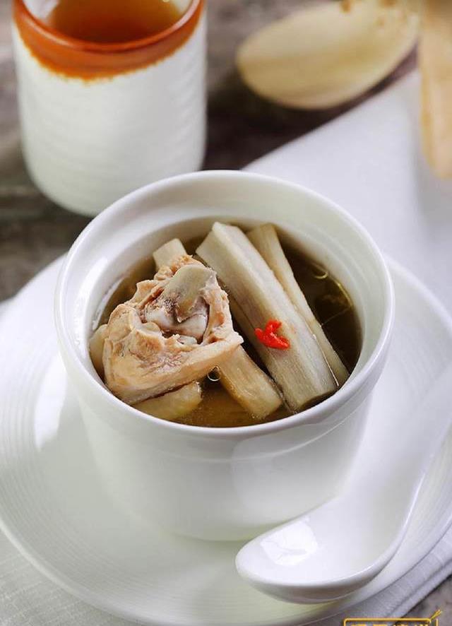 【五目鸡汤】食材:生牛蒡半条、鸡腿1只、牛蒡茶包1个。调味料:盐1小匙、醋少许
