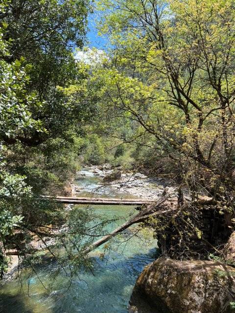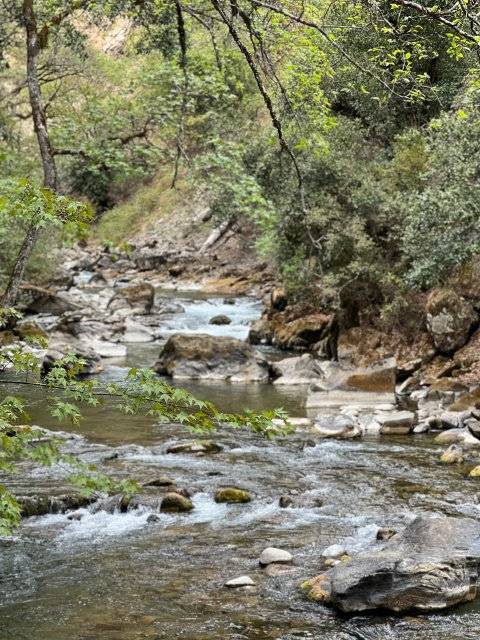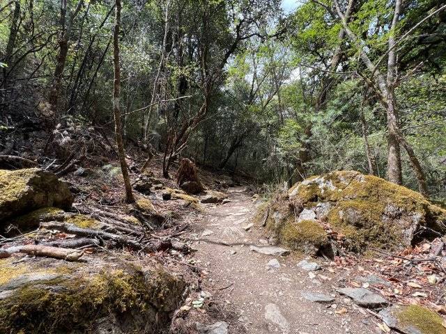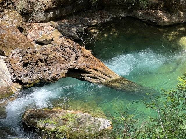 在弯曲的河岸边,有一条护林员用来巡山的栈道,因其沿途风景优美,后成了游客打卡七彩瀑布的徒步线路。栈道曲径幽深,向北延伸,一路向前,眼前的景色不断变化,每一步都能收获意想不到的惊喜。