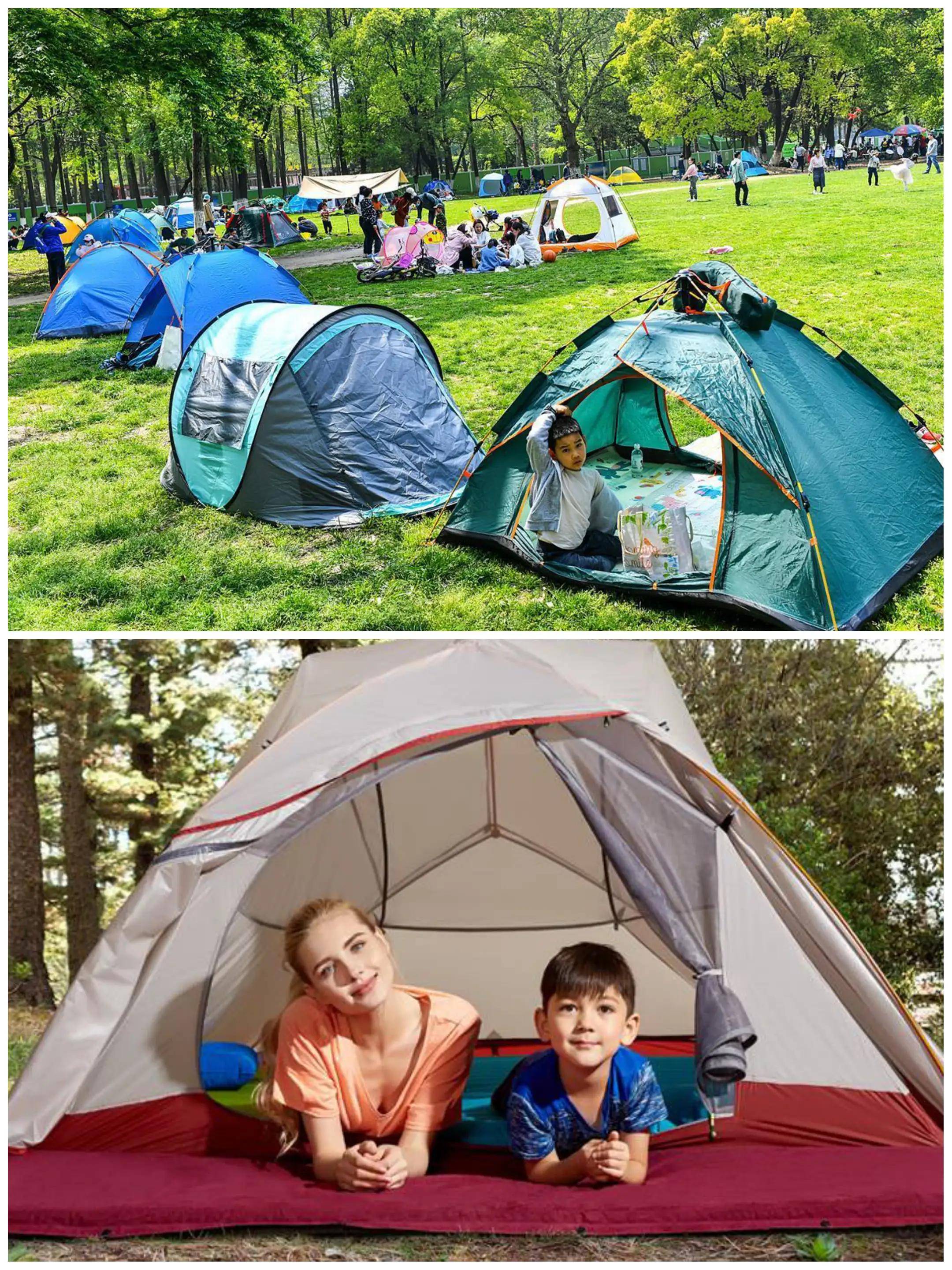 ③、海绵垫或充气垫。这个一般要自己买,帐篷下面是比较硬的地面的话,放上一个垫子会让你舒服很多,无论躺着、坐着、小孩玩耍都不会硌得慌。不用的时候卷起来也不占地方。